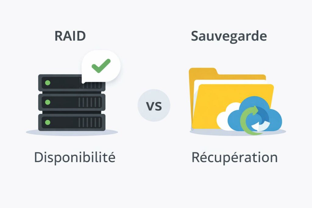 Une sauvegarde sert à récupérer une version saine de vos données, même si le problème n’est pas un disque HS. Or, le RAID réplique fidèlement… y compris les erreurs et les attaques.