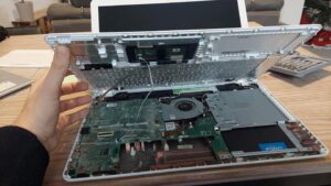 L’intervention a consisté à déposer le disque défaillant, installer le SSD, puis remettre le système en état de fonctionnement sur une base propre, afin de garantir fiabilité et réactivité.