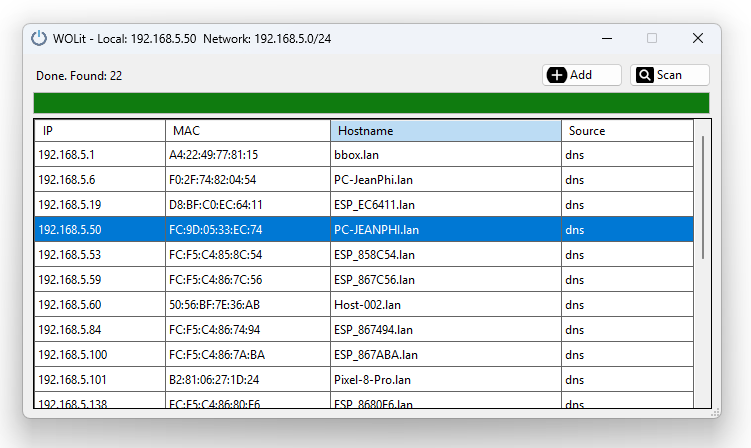 WOLit is a lightweight Wake On LAN (WOL) tool that allows you to remotely start computers over a local network.